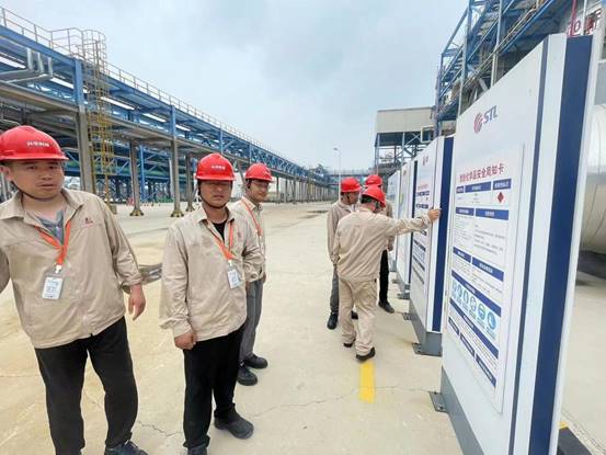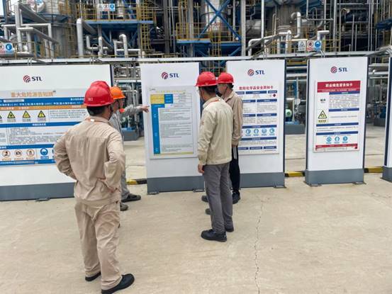 目前興華科技公司部分裝置建設已進入尾期,裝置基本完成,現場目視管理標識牌暫未設置,經過石化基地安全業主委員會協調, 7月12日,興華科技公司相關安全管理人員,赴連云港石化有限公司現場觀摩學習目視管理。在連云港石化HSE部門姜輝經理和安全工程師汪起榮帶領下,觀摩學習人員重點參觀了空分裝置、罐區裝置。參觀過程中汪起榮工程師詳細給大家介紹了現場標識牌的設置要求以及注意事項?,F場學習后,姜經理又詳細的講解一些設置標識牌的經驗和先進的管理方法。